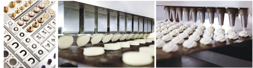 曲奇糕點機,是通過面團擠出成形,能生產(chǎn)多種獨特花式點心和曲奇餅干坯的成形機,具有技術(shù)先進、結(jié)構(gòu)緊湊、多功能、操作簡單等特點,深受廣大用戶所歡迎,也是投資者目前市場最理想的新型儀器機械之一。該機具有多種模具,能生產(chǎn)幾十種花式曲奇餅干,用戶可根據(jù)需要自行調(diào)節(jié)選擇。成形的花式點心與曲奇餅干,形態(tài)獨特、花紋清晰、造型美觀。該機生產(chǎn)的生坯采用熱風(fēng)旋轉(zhuǎn)爐及隧道爐烘烤均可. |